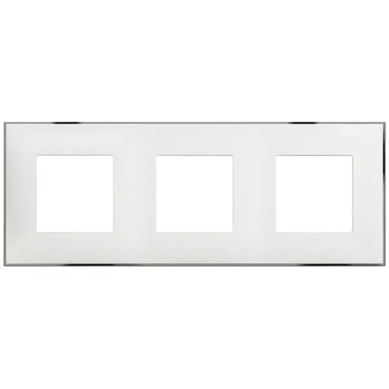 Тройная рамка Classia Bticino белого цвета с элегантными хромированными акцентами сочетает в себе стиль и функциональность, идеально подходя для современных интерьеров. Произведенная компанией Legrand в Италии, она входит в серию Classia, которая отличается лаконичным дизайном и высококачественными материалами. Матовое хромированное покрытие добавляет изысканности и подходит для интерьеров в самых разных стилях.