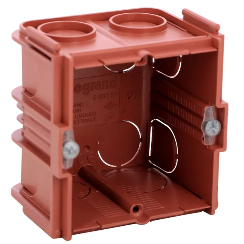- Подходит для установки в сплошные стены (каменную кладку) при возведении электроустановок.