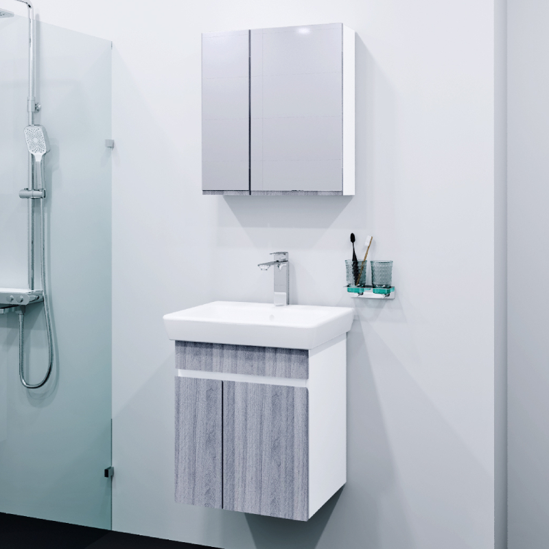 Зеркальный шкафчик для ванной комнаты Mina 55 из ПВХ от VISOTA. Размеры (Ш x Г x В): 55 x 14,4 x 60 см. Цвет: № 44.