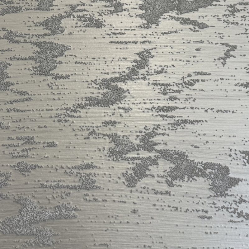 Декоративное настенное покрытие Motivo Caviar Silver от VITEX. Цвет: серебристый. Продукт представляет собой водорастворимую краску на основе специальных акриловых смол и стеклянных перламутровых шариков, создающих впечатляющий 3D-эффект. В зависимости от способа нанесения и используемых инструментов, достигается уникальный эстетический результат.