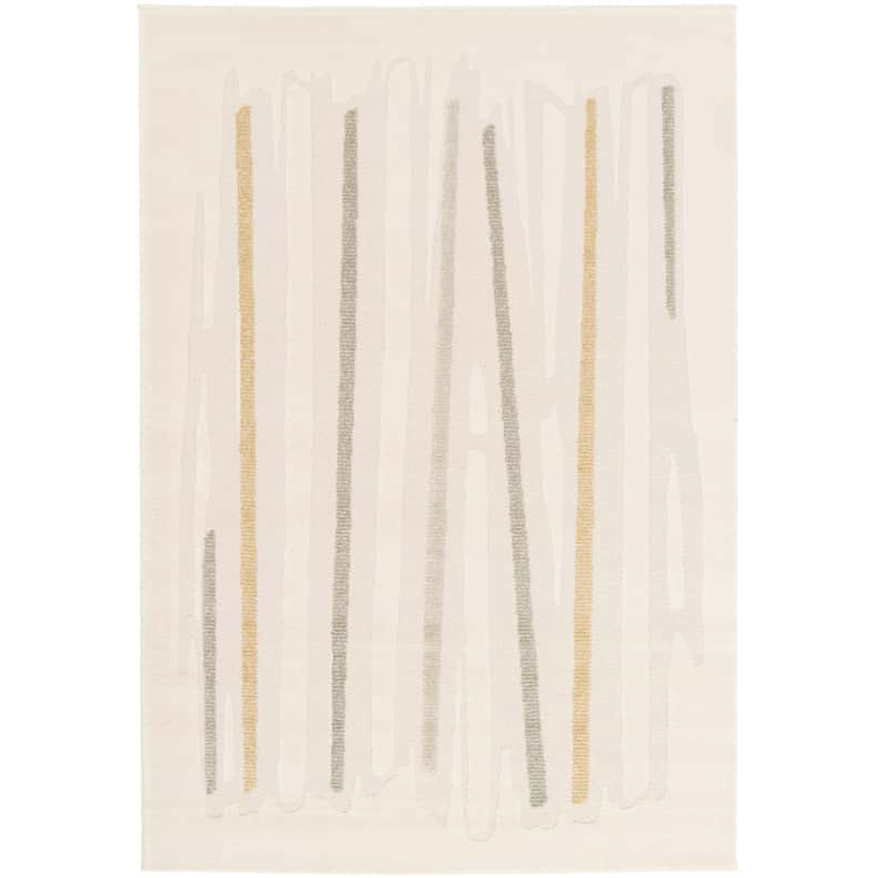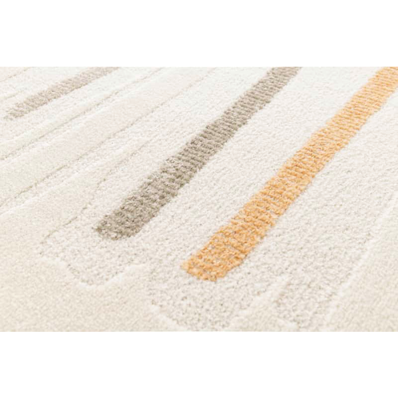 Ковёр Brera Line сочетает в себе минималистичный геометрический стиль и выразительный современный акцент. Чистые вертикальные линии в сочетании с мягкими бежевыми, кремовыми и серыми тонами, дополненные тонкой золотистой нитью, придают интерьеру элегантность и индивидуальность. Он подойдёт для гостиной, спальни или офиса, добавив уюта и современного стиля.