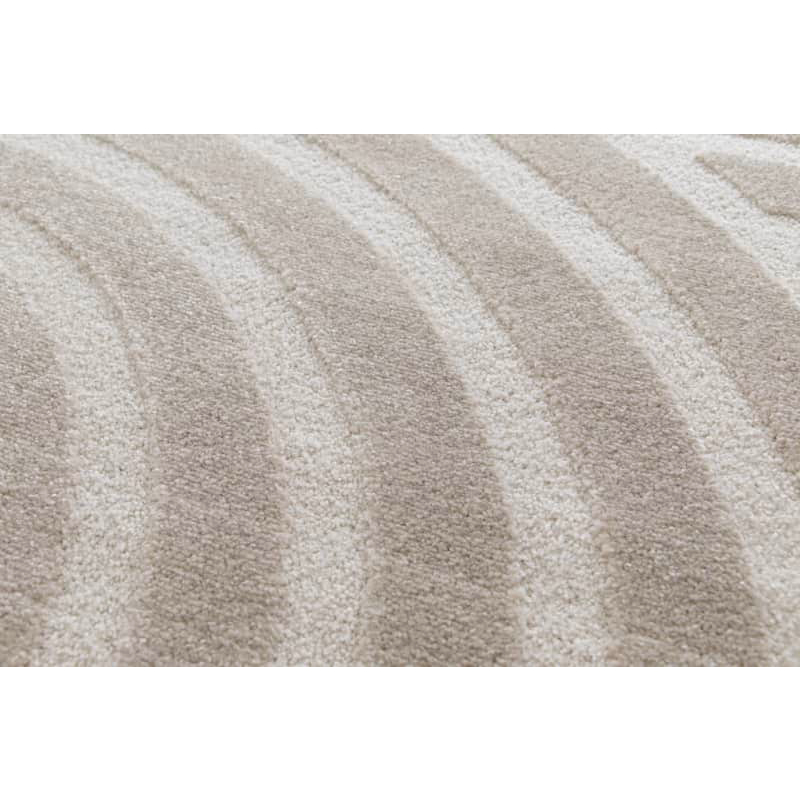 Ковёр Brera впечатляет изысканным геометрическим узором и волнистым рельефом, создающим элегантный трёхмерный эффект. Нежное сочетание бежевых и серо-коричневых тонов добавляет тепла и уюта, сохраняя при этом современный минималистичный облик.