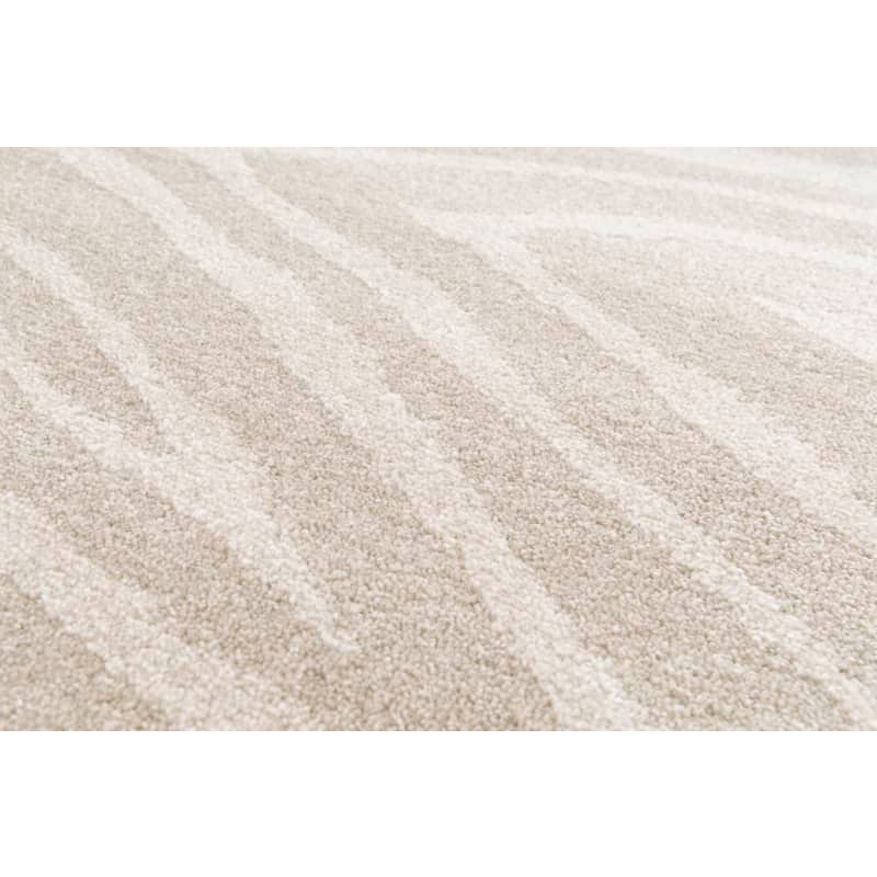 Ковёр сочетает в себе чистый современный стиль и плавный волнистый геометрический узор, который привносит в интерьер ощущение движения и уюта. Элегантное сочетание нейтральных бежевых, кремовых и серо-коричневых оттенков гармонично впишется в любой интерьер — от минималистичного до классического.