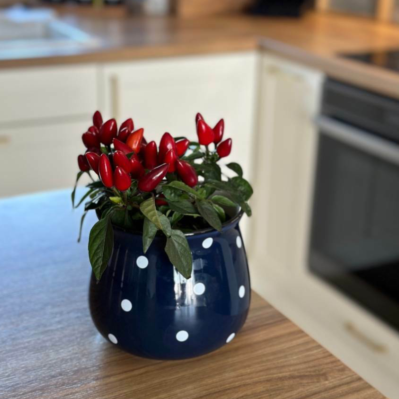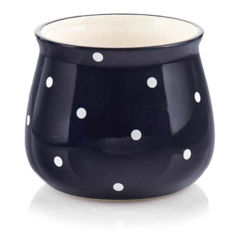 Керамический цветочный горшок 13 x 10 см, синий с декоративными точками, POLNIX.