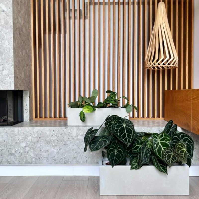 Кашпо из фиброглины Ecolite, 80 x 30 см, светло-серое, квадратное, POLNIX.