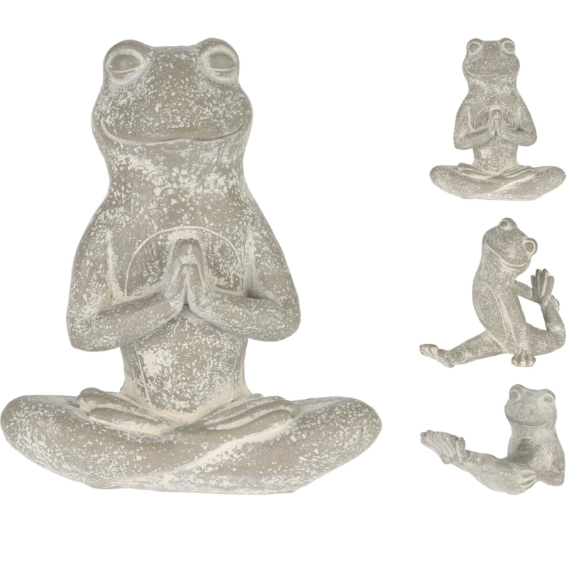 Фигурка выполнена в трех разных позах йогической лягушки, что делает каждую фигурку уникальной. Подходит как для наружного, так и для внутреннего декора.