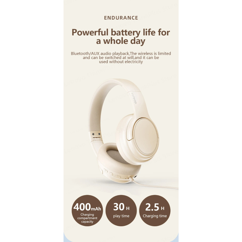 LENOVO ThinkPlus TH20 — это современные беспроводные накладные наушники, разработанные для комфортного повседневного использования и высококачественного звука. Благодаря технологии Bluetooth 5.3 они обеспечивают стабильное соединение и низкую задержку, а возможность воспроизведения через Bluetooth и AUX обеспечивает гибкость при подключении к различным устройствам.