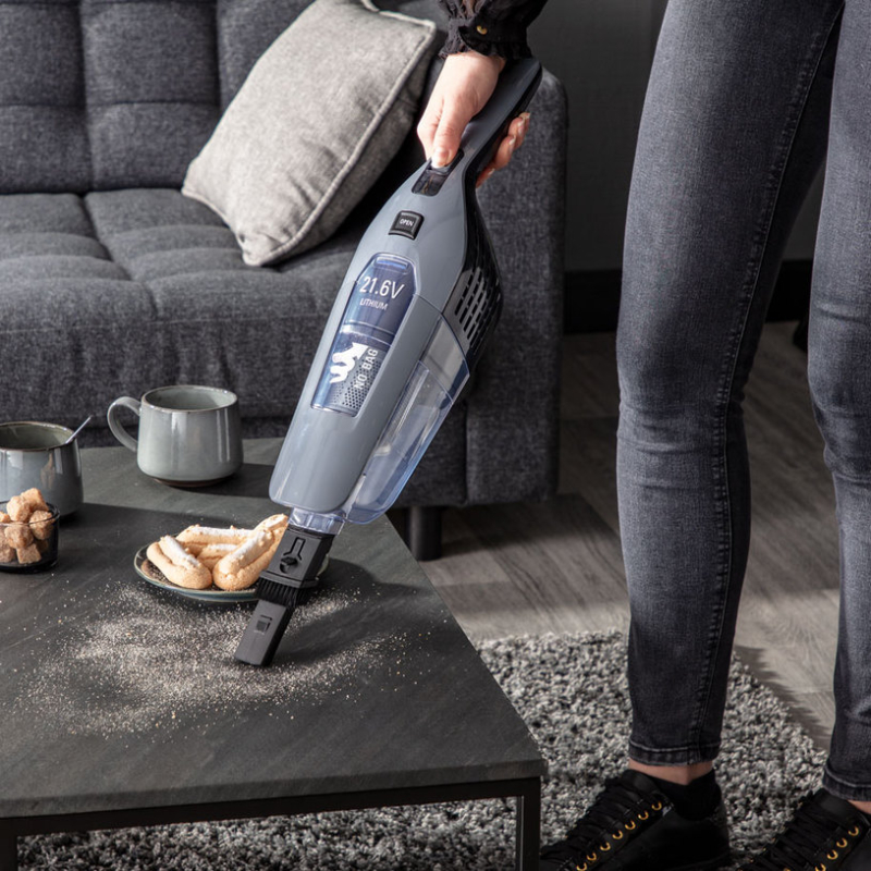 Беспроводной пылесос Rowenta RH6756WO Dual Force — это практичный и удобный прибор «2 в 1», сочетающий в себе функции вертикального пылесоса и встроенного ручного пылесоса в одном компактном устройстве. Это делает его идеальным выбором для быстрой ежедневной уборки без необходимости замены приборов и лишних кабелей.