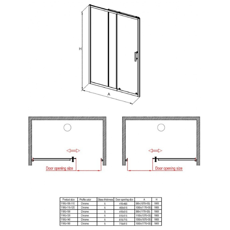 - Конструкция: 1 раздвижная дверь + 1 неподвижное стекло