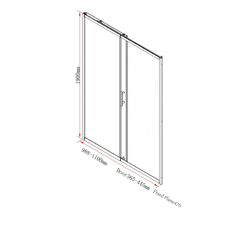 - Конструкция: 1 раздвижная дверь + 1 неподвижное стекло