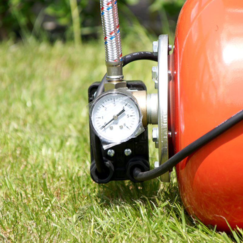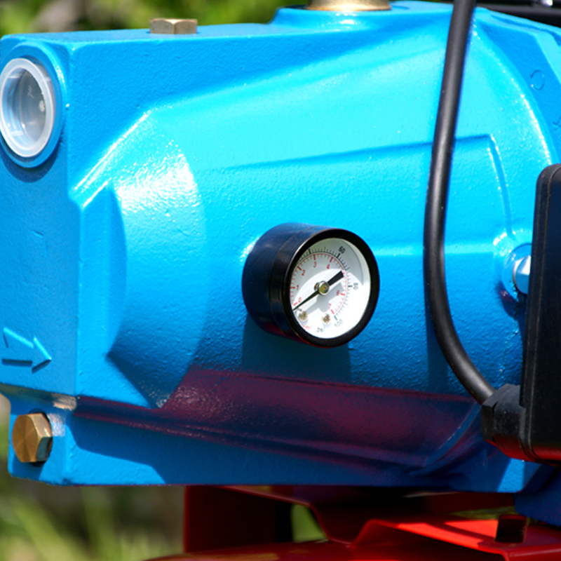 Самовсасывающий насос позволяет забирать воду на глубину до 8 метров и гарантирует безопасный запуск даже при более глубоких источниках воды. Благодаря прочной конструкции с чугунным корпусом и качественными внутренними компонентами система работает надежно, относительно тихо и экономично, поддерживая достаточно высокое давление для полива и снабжения более чем одной точки потребления.