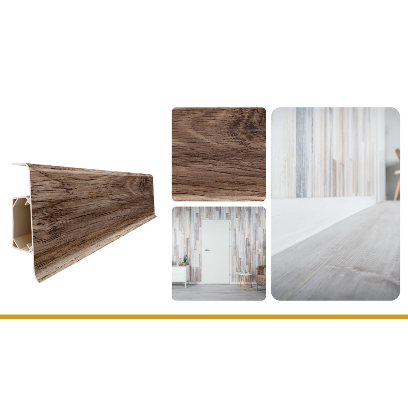 Изготовленный из высококачественного ПВХ-материала, плинтус обладает высокой устойчивостью к ударам, влаге и ежедневному износу. Это делает его подходящим для использования в различных помещениях, включая кухни, коридоры и другие пространства с повышенной влажностью.