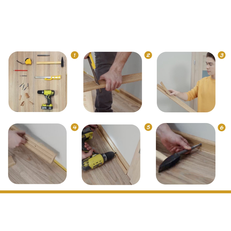 Плинтусы серии Esquero позволяют скрыть электрические кабели, что способствует созданию более аккуратного и чистого интерьера. Монтаж осуществляется с помощью дюбелей, что обеспечивает быстрое и надежное крепление без необходимости использования специальных инструментов.