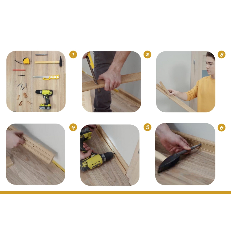 Плинтусы серии Flex позволяют скрыть электрические кабели, что способствует созданию более аккуратного и чистого интерьера. Монтаж осуществляется с помощью дюбелей, что обеспечивает быстрое и надежное крепление без необходимости использования специальных инструментов.