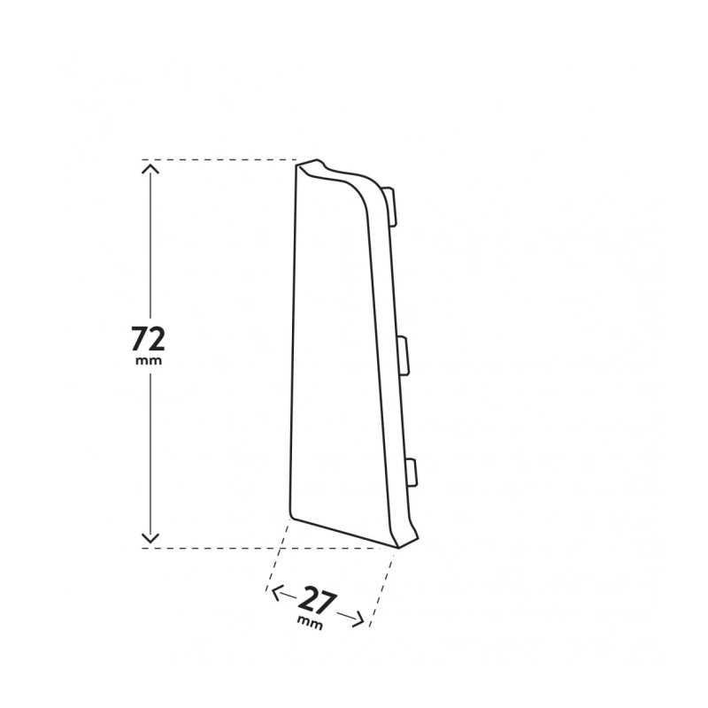 Изготовленный с использованием полимерной технологии, заглушка устойчива к износу, влаге и ежедневному использованию. Установка быстрая и простая, а аксессуар специально разработан для точной установки на плинтуса Arbiton INDO White Mat 40, обеспечивая прочность и долговечную защиту краев плинтуса.