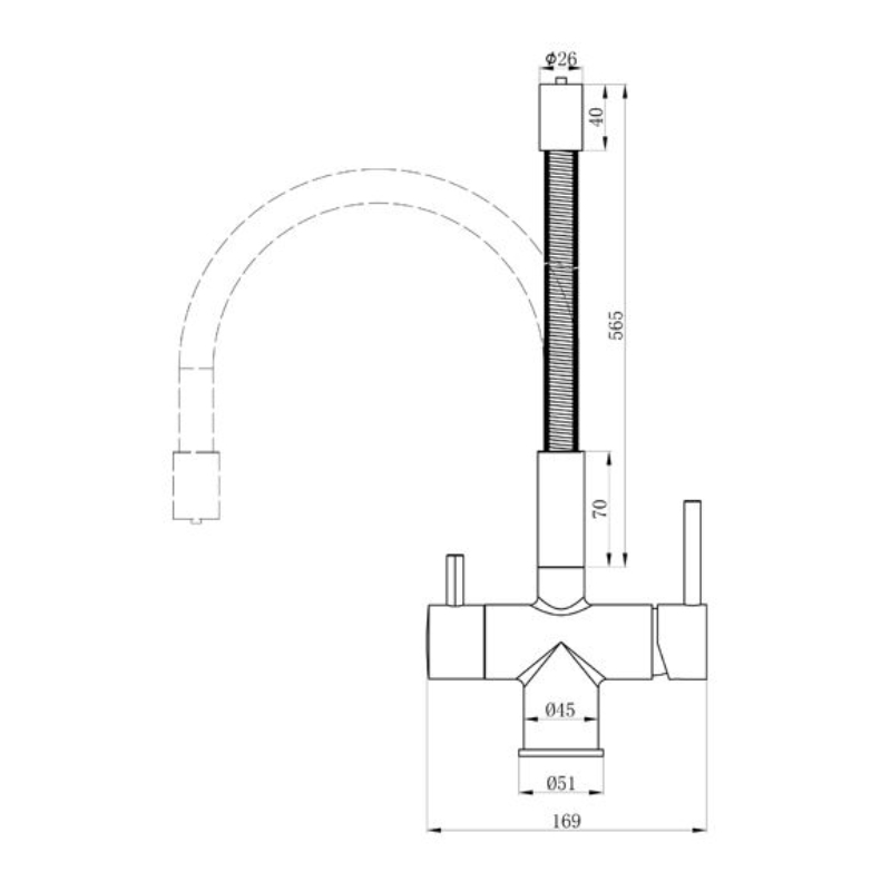 Напольный кухонный смеситель из серии San Remo от FORMA VITA. Этот смеситель представляет собой комбинированное кухонное решение, объединяющее обычную и фильтрованную воду в одном корпусе, что устраняет необходимость во втором кране для питьевой воды.