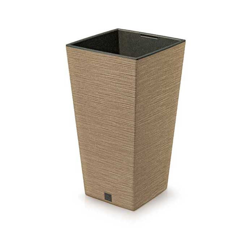 Изготовленный из высококачественного пластика с добавлением натурального дерева, горшок устойчив к ультрафиолетовым лучам и переменчивым погодным условиям, что гарантирует его длительное использование. Входящая в комплект практичная вставка облегчает посадку и уход за растениями, оптимизируя при этом использование почвы и воды.