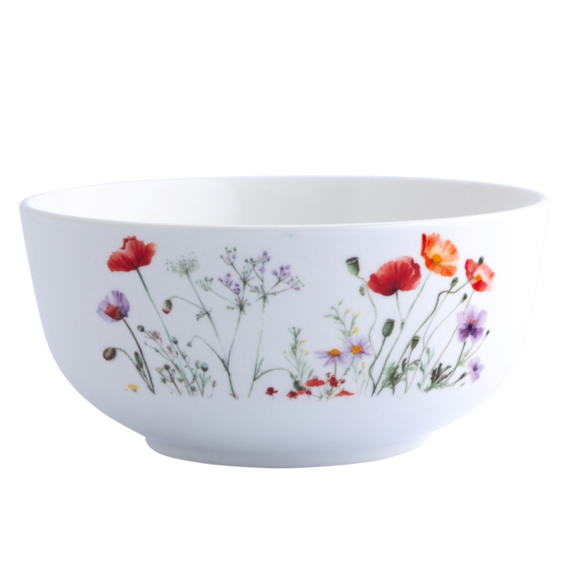 Фарфоровая чаша «Цветущие цветы» ALTOM диаметром 14 см — это стильное и практичное изделие, сочетающее в себе элегантный цветочный дизайн и высокое качество исполнения. Она украшена нежными полевыми цветами, главным акцентом которых являются ярко-красные маки, придающие сервировке живой и характерный вид. Чаша изготовлена из высококачественного фарфора New Bone China (NBC), отличающегося легкостью, прочностью и долговечностью в повседневном использовании.