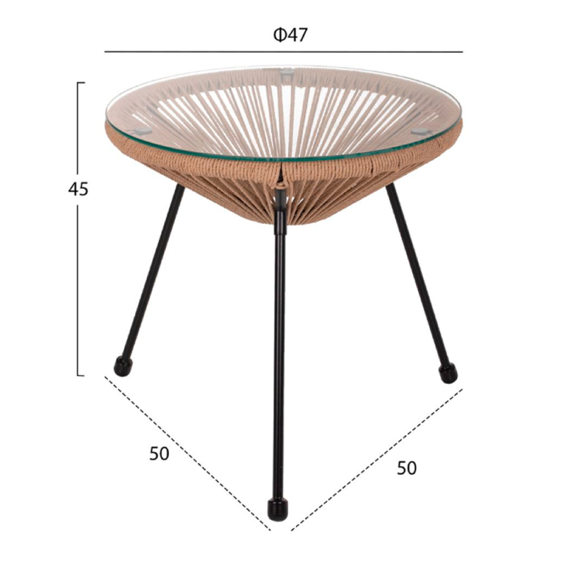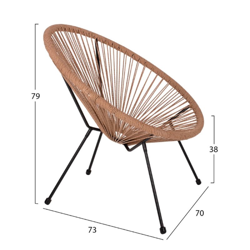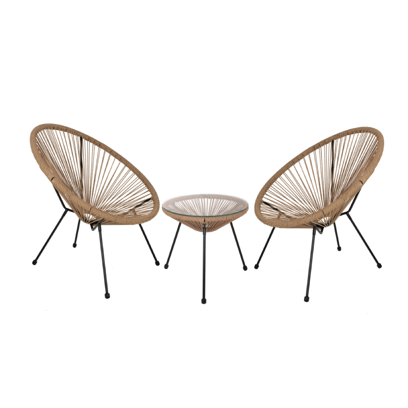 В комплект входят два эргономичных кресла с характерным плетением и компактный столик со стеклянной столешницей. Легкая, но прочная металлическая конструкция покрыта порошковой краской для большей долговечности, а плетение с защитой от УФ-излучения долго сохраняет свой цвет и форму.