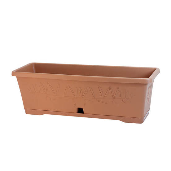 Пластиковый горшок из серии Tirreno марки IDEL терракотового цвета с размерами 40 х 18 х 15 см. Горшок имеет емкость 7 литров. Небьющийся, устойчивый к длительному воздействию солнечных лучей и низким температурам.Горшки – это декоративные горшки, в которых хранятся обычные цветочные горшки.Горшки не имеют дренажных отверстий и высаживать растения прямо в них не рекомендуется, хотя это иногда и практикуется. Горшок должен быть как минимум на два-три сантиметра больше горшка, чтобы обеспечить хорошую циркуляцию воздуха.