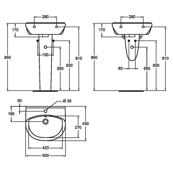 Белая керамическая мойка Ulysse/Style размером 50 x 43 см. Имеет центральное отверстие для стоячего смесителя стандартного размера Ф35 мм. Он также оснащен переливом.
