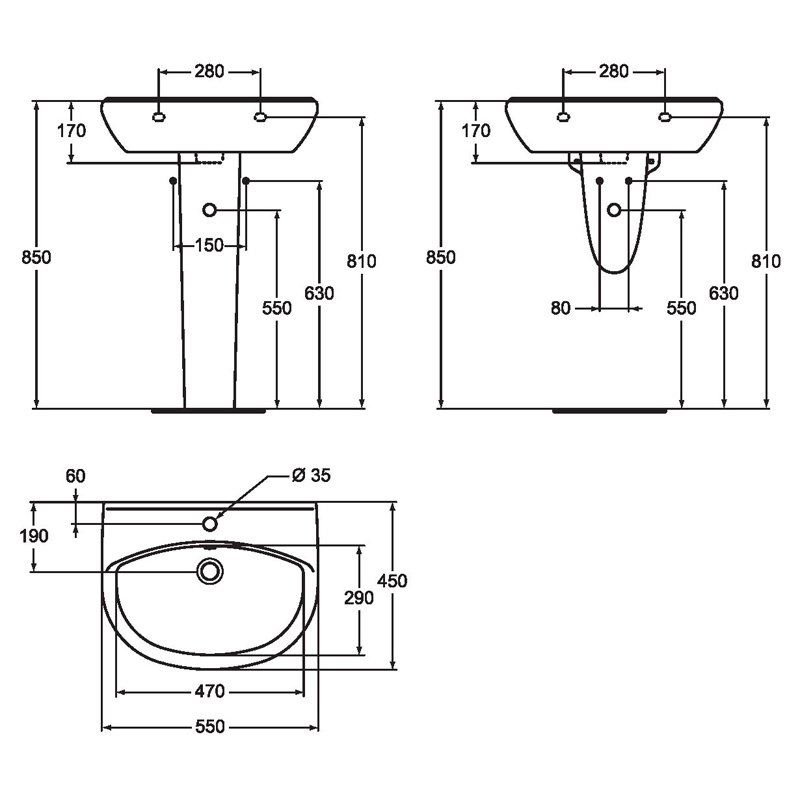 Белая керамическая раковина Ulysse/Style размером 55 x 45 x 17 см. Подходит для настенного монтажа. В центре имеется отверстие для стационарного смесителя стандартного размера φ35 мм. Он также оснащен переливом.