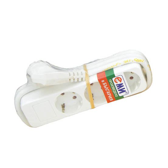 Белый пластиковый электромагнитный переходник с силовым кабелем длиной 1,5 метра, 3 розетками для электроприборов и без выключателя питания.Это необходимое благо для каждого дома или офиса, где есть бытовая техника, но не хватает электрических розеток. Электроразветвитель можно использовать в любом помещении, где нет повышенного уровня влажности, его номинальное напряжение 3 х 16А.