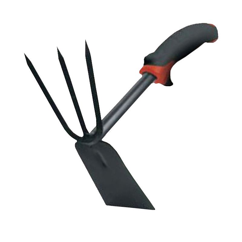 Ручная садовая мотыга из серии TG Premium марки TOP GARDEN. Инструмент имеет компактные размеры, что упрощает его использование и хранение. Конструкция включает монолитную металлическую часть и металлическую часть с 3-мя рожками. Это делает его пригодным для рыхления, аэрации и прополки почвы. Мотыга имеет эргономичную рукоятку, которая не позволяет руке соскальзывать и обеспечивает удобство работы.