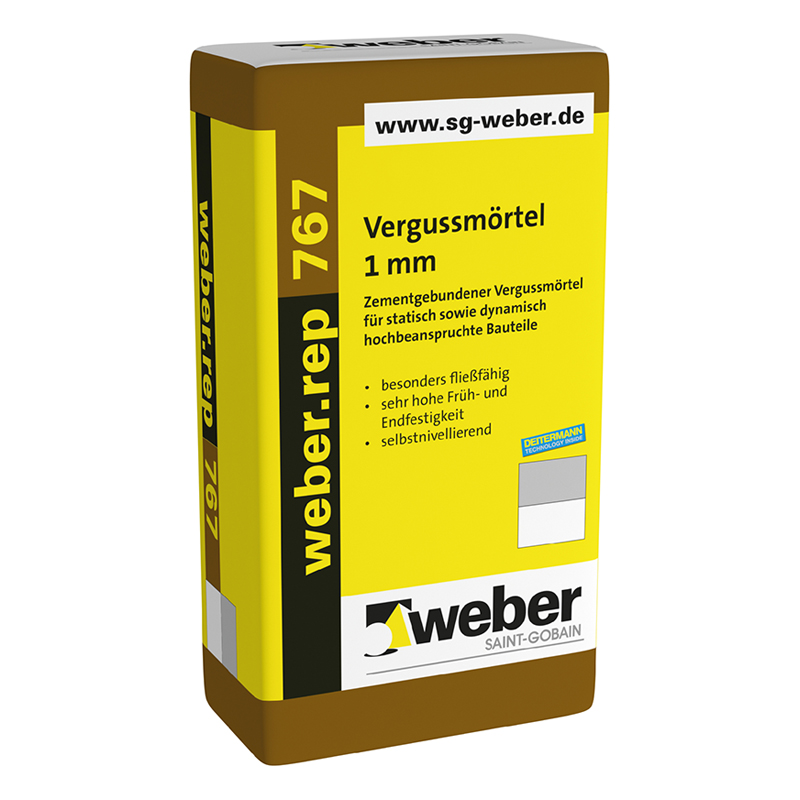 Безусадочный раствор WEBER weber.tec 767 на цементной основе, предназначенный для заполнения бетонных швов и полостей и анкеровки металлических элементов в бетонных поверхностях. Он используется для заливки и анкеровки опорных оснований, металлических монтажных деталей, анкерных болтов, фундаментных рам и пластин машин, подкрановых путей и рельсов и многого другого. Упаковка: 25 кг.