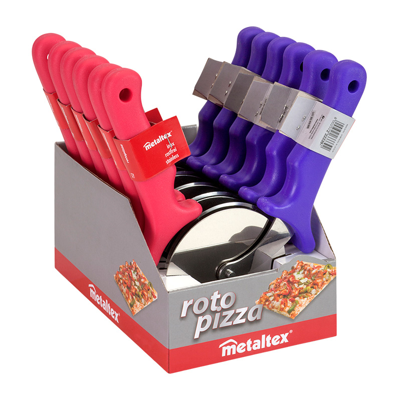 Нож для пиццы из серии Rotopizza от METALTEX. Рабочая часть устройства /лезвие/ изготовлена из нержавеющей стали, а рукоятка выполнена из пластика и имеет эргономичную форму для оптимального захвата при использовании. На конце ручки есть отверстие для подвешивания.