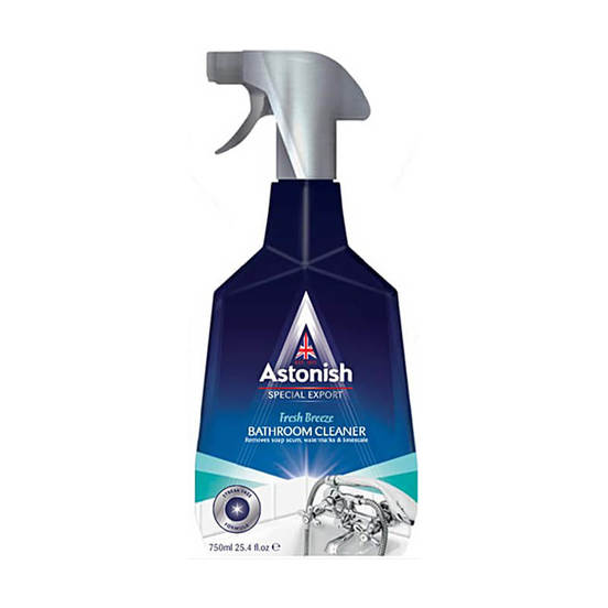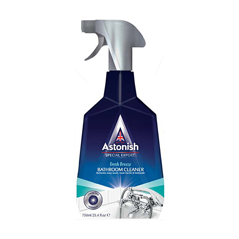 ASTONISH спрей-очиститель для ванных комнат, влажных помещений и сантехники. Продукт особенно эффективен, когда вам нужно удалить слои на душевых, акриловых и стеклянных душевых уголках, занавесках для ванн, дверях с алюминиевыми рамами и т. д.