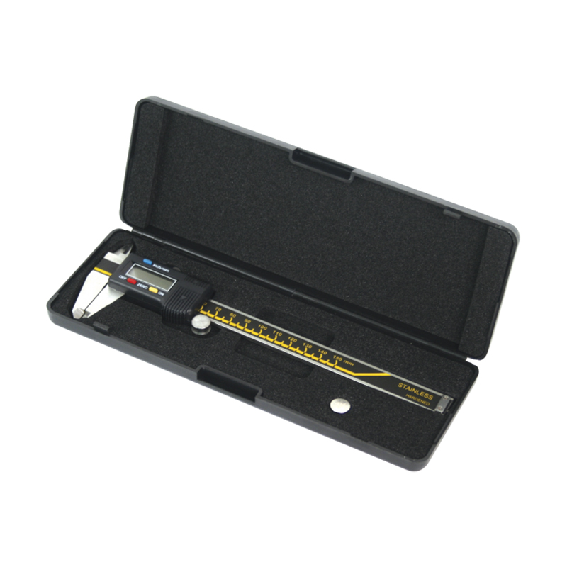 Изделие представляет собой цифровой штангенциркуль со шкалой от 0 до 150 мм ТМД. Корпус изготовлен из нержавеющей стали. Длина штангенциркуля 235 мм, точность ± 0,02 мм.Есть "память" и функция прокрутки. Возможность измерения в миллиметрах и дюймах.