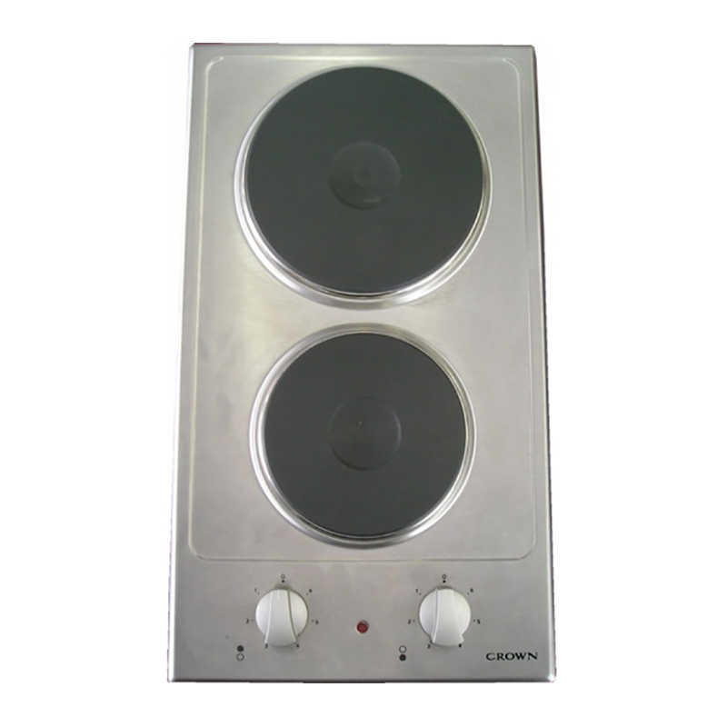 Электрическая встраиваемая варочная панель CROWN VE 32 IX с 2 зонами нагрева, которые представляют собой чугунные варочные панели. Управление осуществляется механически с помощью поворотных переключателей.
