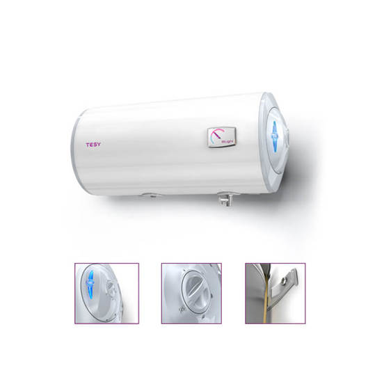 Котел большого объема для горизонтальной установки TESY Bilight GCH 50/35/2 B12 TSR мощностью 2 кВт и объемом 50 л. Его размеры: ширина - 79 см; диаметр - ф35 см. Котел имеет стеклокерамическое покрытие, термометр, защиту магниевого анода и термостат. Электрические розетки расположены с правой стороны. Имеет высокоэффективную изоляцию из экструдированного полиуретана.