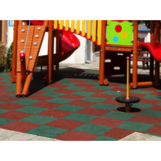 Ударопоглощающее красно-красное напольное покрытие EPOS размером 400 x 400 x 40 мм. Предназначены для ограждения детских и спортивных площадок, спортивных залов, гаражей и эстакад, балконов и террас, производственных помещений, вокзалов и заправок, аллей и мостов, тиров, а также вокруг бассейнов и джакузи.