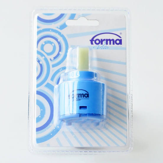Продукт представляет собой закрывающий механизм с короткой керамической головкой Cremona от FORMA VITA. Механизм имеет диаметр 40 мм. Подходит для однорычажных смесителей. Он может быть установлен на стандартных батареях, предлагаемых FORMA VITA.